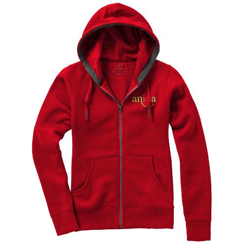 | Description | The Arora women's full zip hoodie – a perfect blend of style and functionality. Crafted with attention to detail, this hoodie effortlessly combines comfort with a contemporary edge. Featuring flat knit rib side panels, cuffs, and bottom hem, this hoodie offers a tailored fit that's both comfortable and flattering. The single jersey lining inside the hood ensures an extra layer of comfort. Engraved antique silver eyelets and contrast-colored herringbone tape contribute to the hoodie's unique aesthetic. Made from a 300 g/m² premium blend of polyester and BCI cotton knit, this hoodie strikes the perfect balance between warmth and style. BCI (Better Cotton Initiative) signifies our dedication to responsible sourcing and environmentally conscious production. Choosing the Arora ensures you make a more sustainable choice. This hoodie is designed with a fitted shape for a feminine look. |