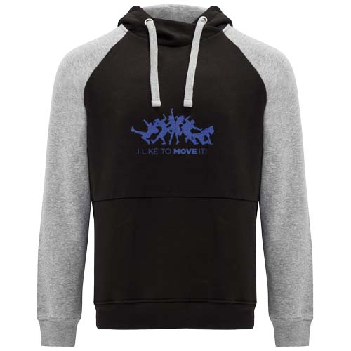 | Description | Two-colour unisex hoodie. Hood with crossed neck and metal eyelets. Contrasting inner hood, drawcord and raglan sleeves. Kangaroo pocket. Cuffs and hem in 1x1 elastane rib knit. Removable label. |