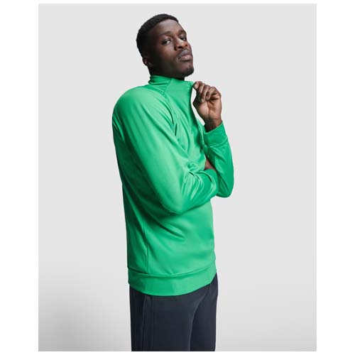 | Description | Technical fabric. Raglan sleeves. Inner fleece. Collar with half zipper and matching reinforced covered seams. 1x1 rib in back collar, cuffs and hem. Removable label. Sweatshirt to match with Neapolis trousers. |